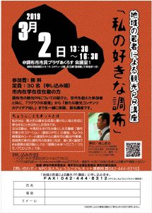 今年開催のラグビーW杯、2020年の東京2020オリンピック・パラリンピックの開催都市として注目の高まる調布市の「観光PR」についての紹介と、実際に世代を超えた参加者と共に、「ワクワクの感覚」から「新たな観光コンテンツのアイデア出し」までを一緒に体験、創る講座です。