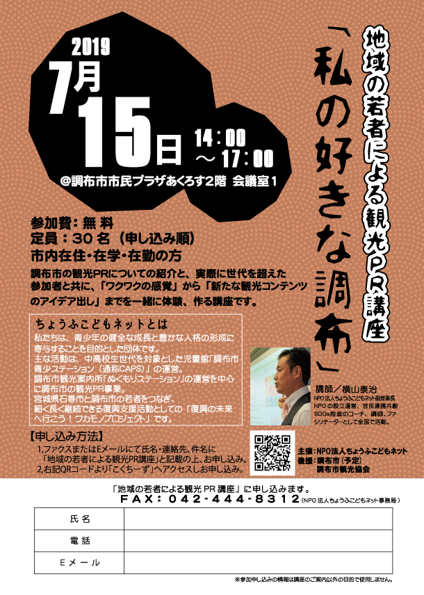 - NPO法人ちょうふこどもネット事務局までファクスまたはEメール