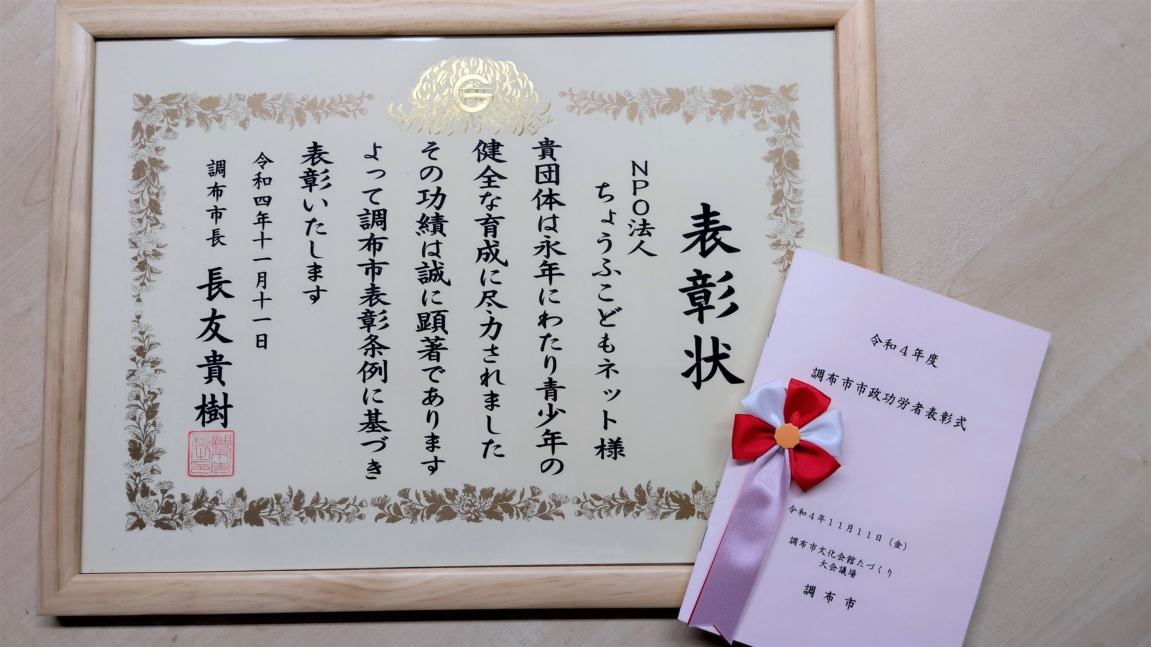 この度、NPO法人ちょうふこどもネットは「調布市市政功労者表彰」をいただきました。
