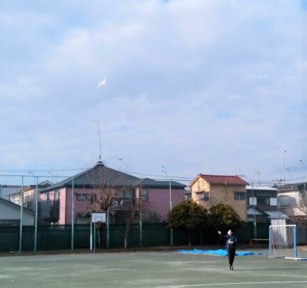 1 月10 日、調布市立石原小学校校庭にていよいよ凧あげです。